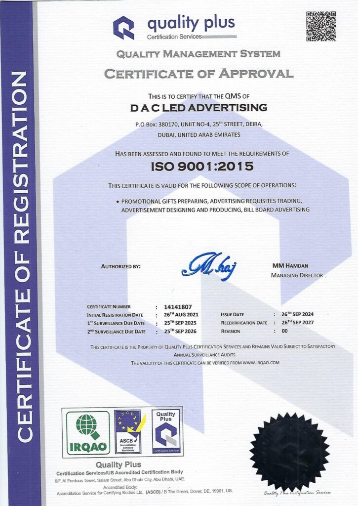 DAC serves as your best companion among the digital sign companies in Dubai. We are a digital signage company in Dubai, established with the aim of providing all-inclusive branding services that promote your business to the next level. Advertising being done in a unique way-This is what we have been doing all those 15 successful years traversed as a digital signage company in Dubai.